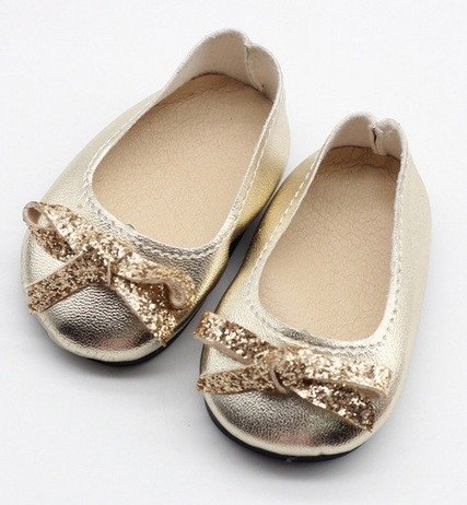 Ballerine or avec noeud paillettes or taille 6,50cm sur 3,5cm de large pour poupée ancienne et moderne